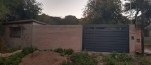 - En su frente cuenta con cerramiento de ladrillo visto con portón eléctrico corredizo de 3,50 m de ancho por 2,20 m de alto.
